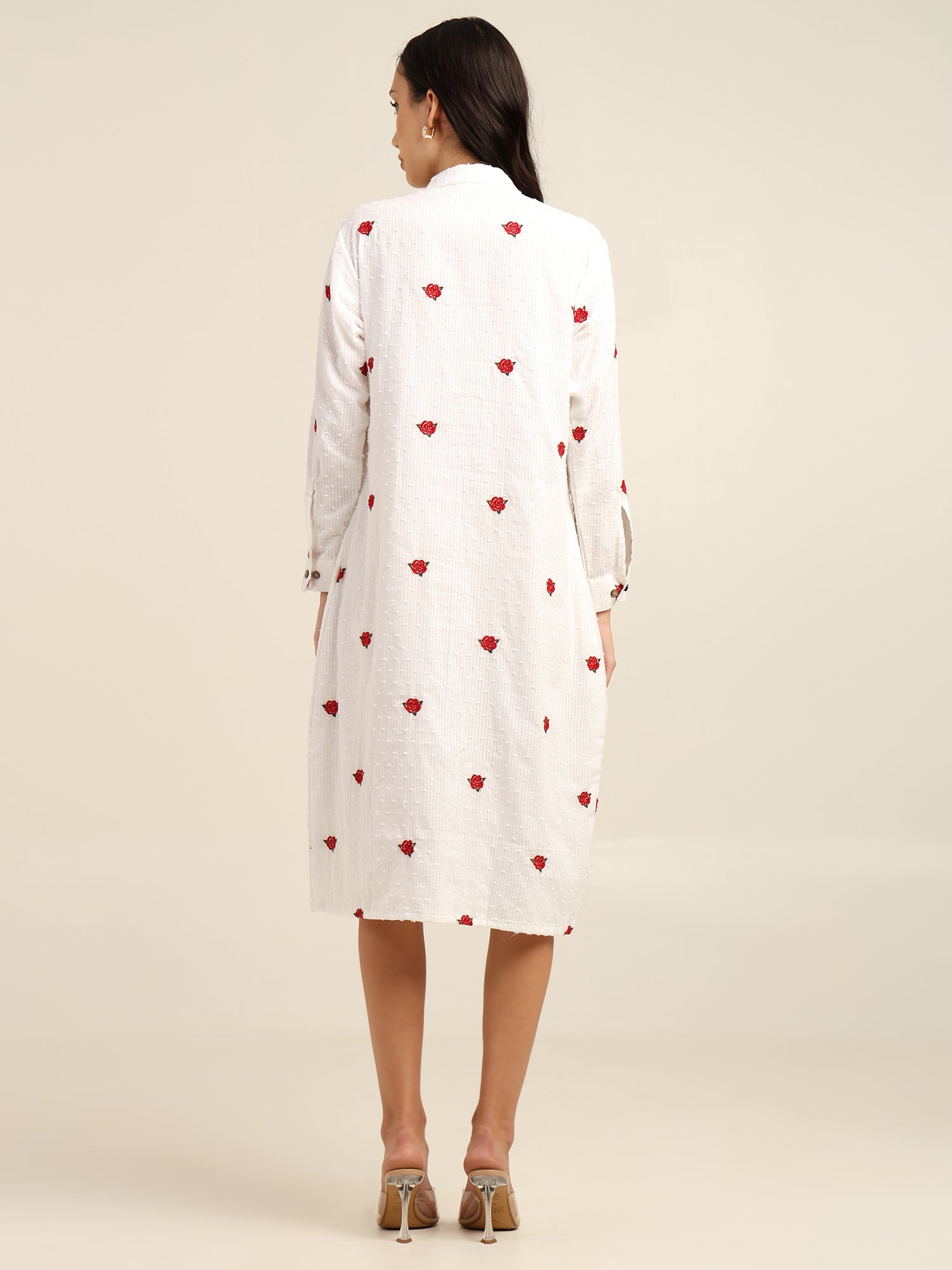 • Features delicate all-over rose embroidery for a feminine, charming look